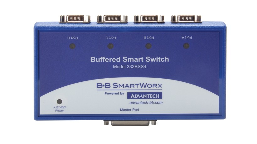 The BB-232BSS4 switch communicates from 1 serial port to 4 devices. Each port has a UART and 8K TX/RX buffer - data rate, format and protocol can be configured separately. DB25 Master port configured as DCE. DB9 Slave ports configured as DTE (for modem, DCE devices). Null modem may be required. - Additional Information