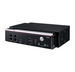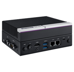 - DIN-Rail AI system with essential I/O ports on front-side bezel