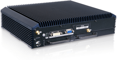 IRS-100-ULT3-i5/4G-R10 Fanless railway system with Intel® Core™ i5-6300U processor, (15W), 4GB DDR4L pre-installed memory, two 2.5" SATA SSD bays, VGA, DVI, two M12 GbE LAN